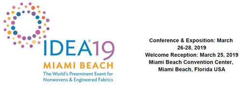 1,IDEA19美國(guó)邁阿密無紡布展 時(shí)間2019年3月26-28日,邁阿密長(zhǎng)灘展覽中心,展位號(hào)1454。